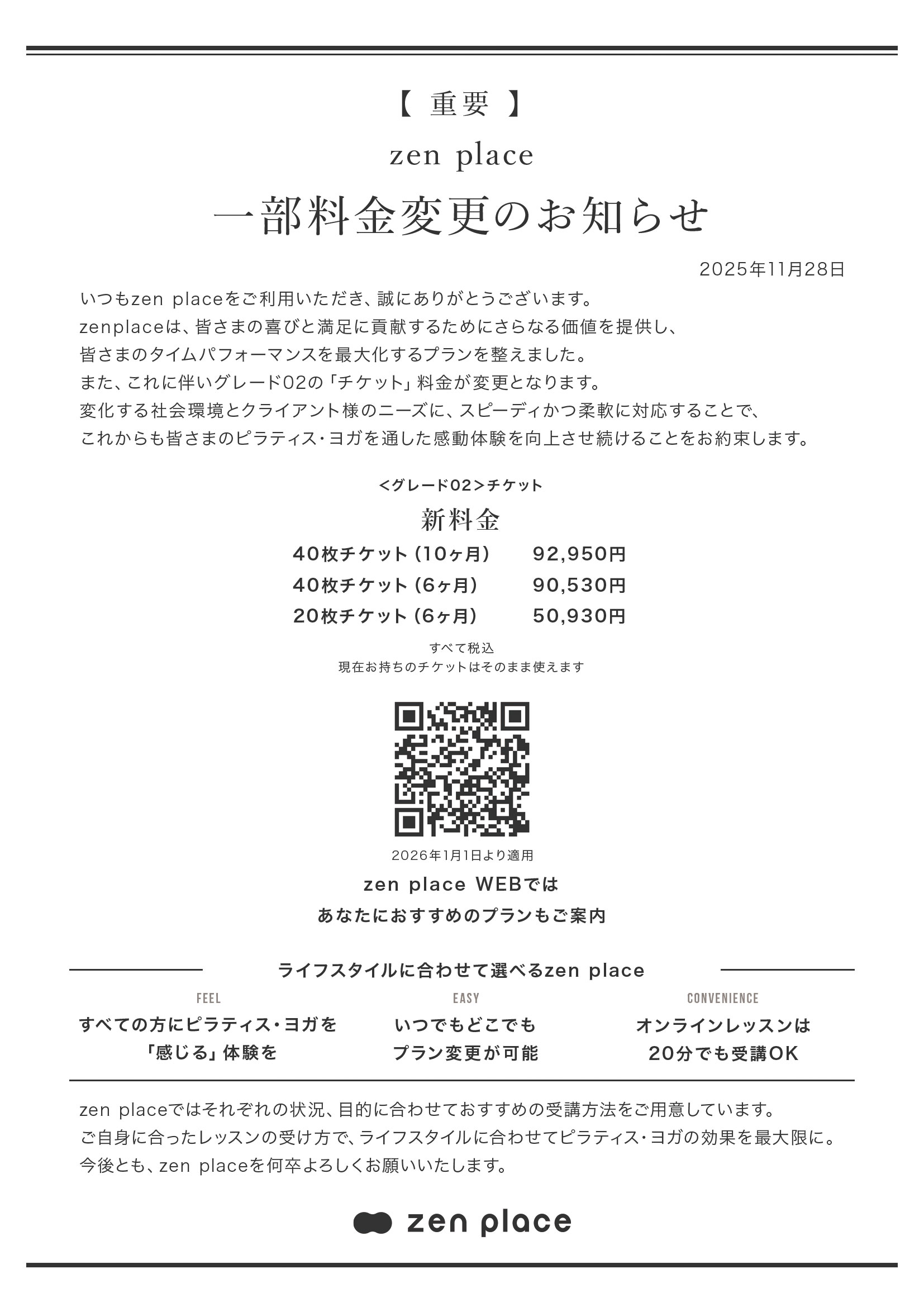 平素よりzen placeをご愛顧いただき、誠にありがとうございます。